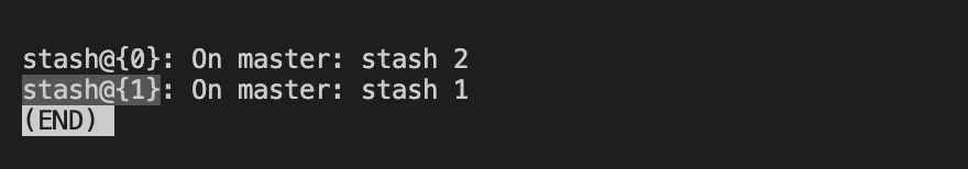 위 명령어로 stash stack에 쌓인 목록을 확인할 수 있다.