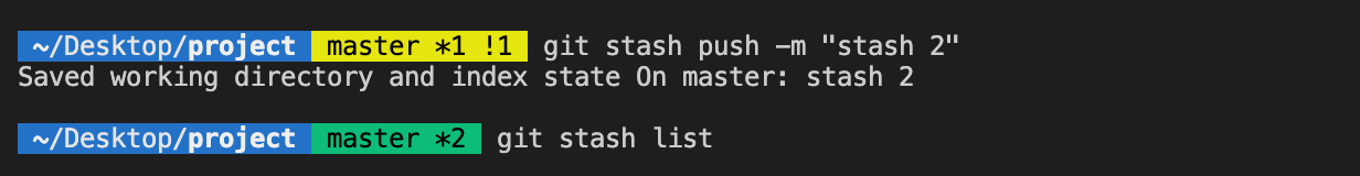 - 위 명령어로 stash stack에 저장할 경우 타이틀 없이 저장된다.